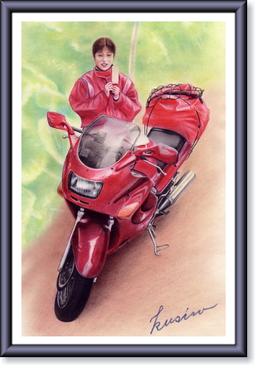った女性と愛車のZZRです。